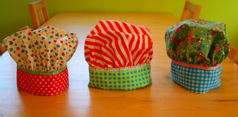 A few weeks ago I decided to make some chef hats for my kids. Don’t really know where the idea came from but I holed myself in my sewing room for an entire morning and came out with these. The kids loved them. And as you can see from the Kiva Kids post they actually wore them in public (so did their friends). I think all my friend’s kids will be receiving them for Christmas this year.