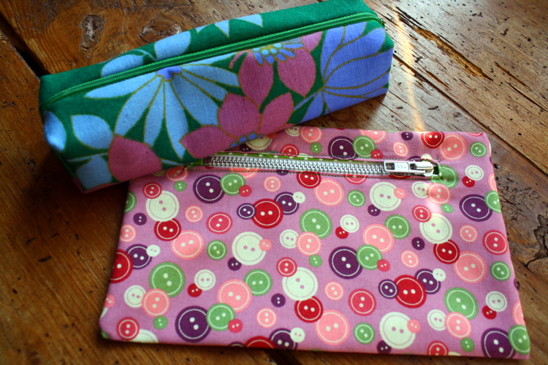 I’m feeling better today.  Thanks to Lemsip Max for another beautiful sleep.  I was even feeling well enough to host our weekly sewing class here this morning.  We made 2 more zippered pouches (all using different techniques).  My previous zipper fear is almost gone.  Almost.  Here’s what we did today…