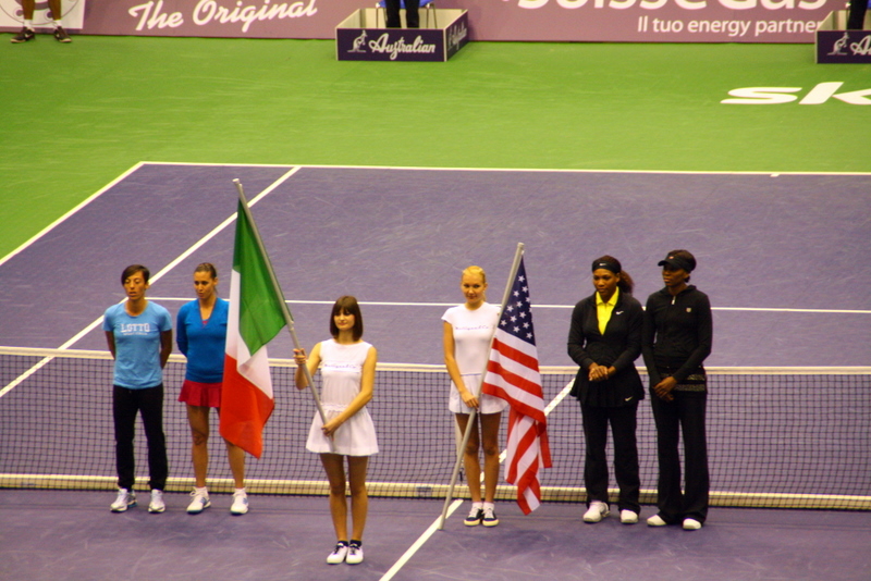 Yesterday we surprised our kids and my in-laws with tickets to see Serena and Venus Williams play an exhibition tennis match against Schiavone and Pennetta in Milan. It was the first real tennis match that we’ve seen live and we all loved it. Those Williams sisters are STRONG. When Schiavone was playing against Venus Nico kept asking if the girl or the boy was winning (sorry Schiavone).