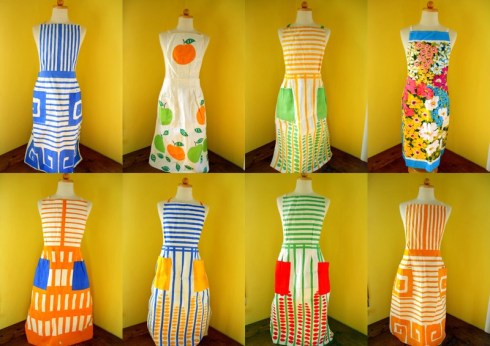 how could I have possibly missed this post?? I just found this on my reader now! so beautifull!! colors, patterns – aprons! glorious 🙂 I love it. I can totally see them brightening up the kitchen. and a happy chef too. haha.. yeah you could definitely make them into dresses. or maybe try like Bjork in her Bachelorette video: http://youtu.be/x5nNfbTS6N4 (saddish song but you get the idea. hehe)