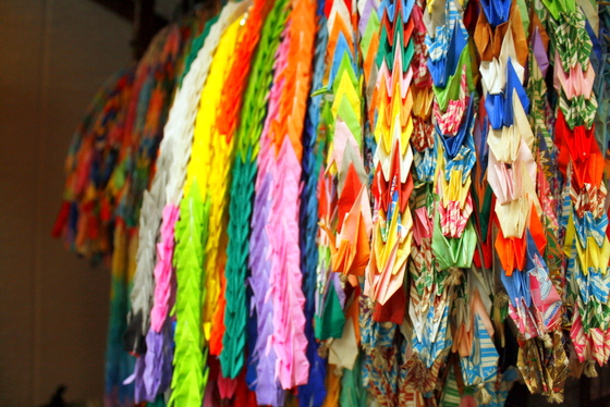 Thousand paper cranes at Shinto Shrine.