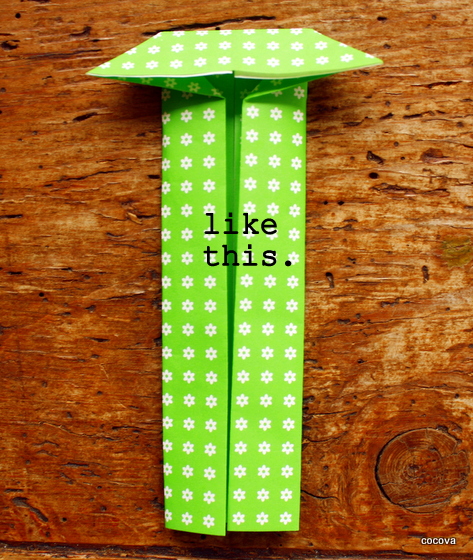 Here’s how to do it yourself! There is one step that will make you want to crumple up the paper, run out of the room and never try origami again but please believe me that once you ‘get” it everything will run smoothly. Hopefully my instructions will help you a little (original pattern idea comes from Martha Stewart Living June 2004). Continue to read for the step-by-step…