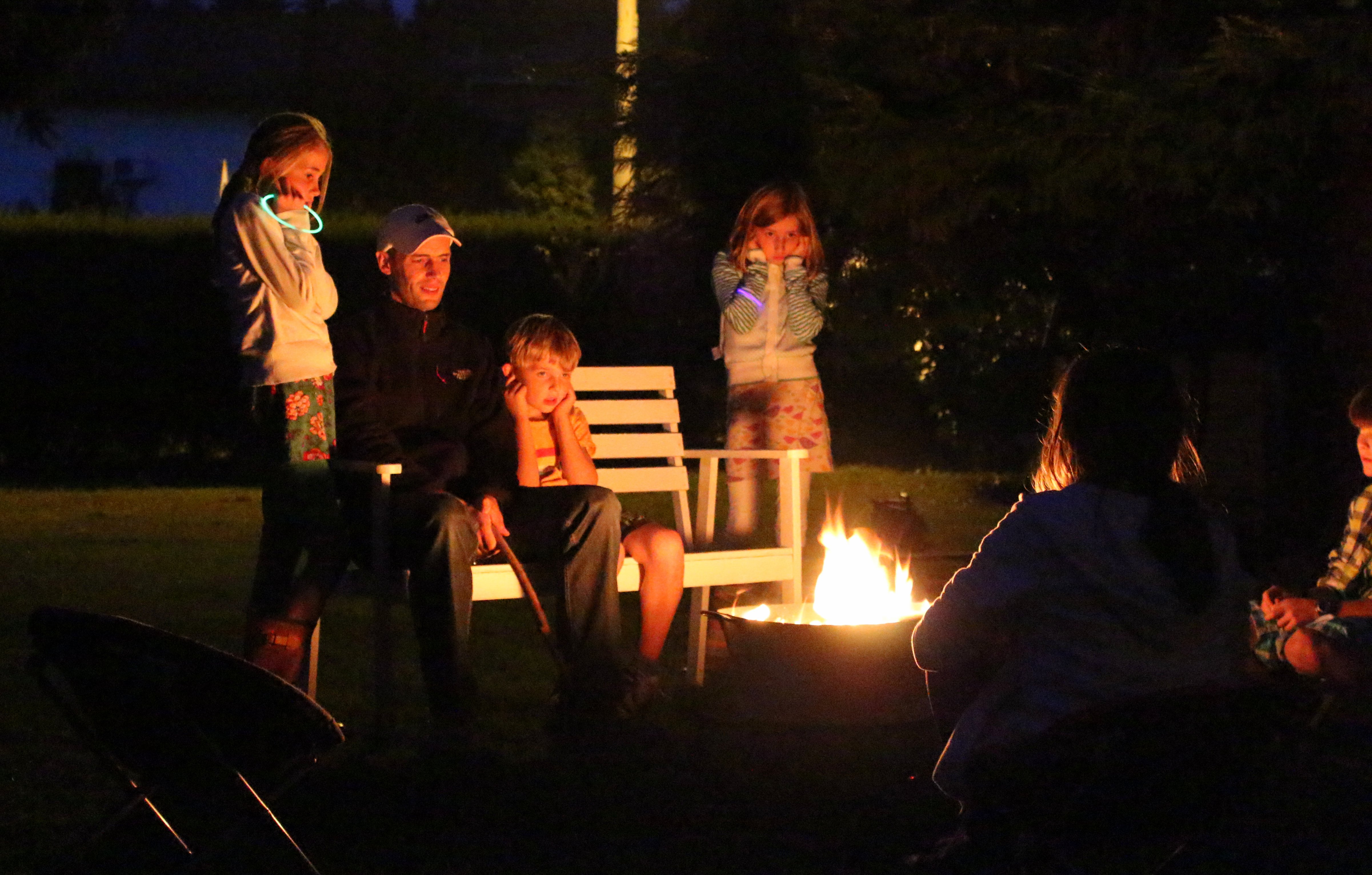 Listening to scary stories around the bonfire with their ears plugged. All three of them!
