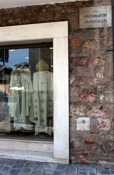 And of course there are lots of shops to deck yourself out in the newest fashions in the Catholic world.  And not at a cheap price too (the robe on the right was close to 1000euro).IMG_9959After visiting Assisi we took some advice from a local to drive an extra 15 minutes to the nearby town of Spello.  He said it was the ideal place for a quiet walk and lunch away from the pilgrimage crowds of Assisi.  And I have to admit that it was one of our favourite places in Umbria.