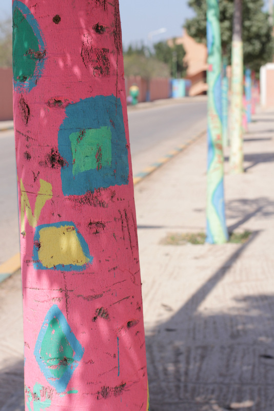 …this neighbourhood outside of Agadir with painted trees in bright and cheerful colours and patterns.