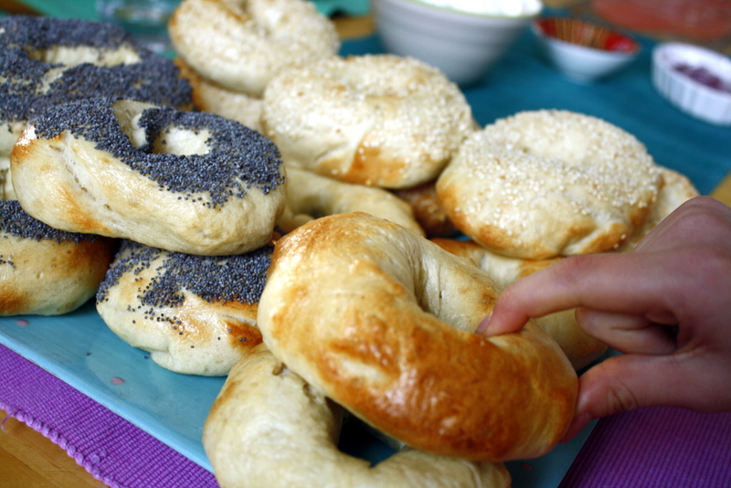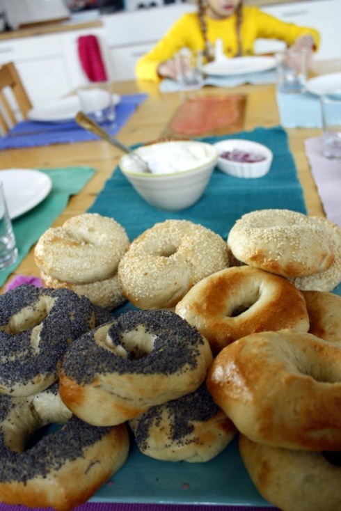 Last week-end we had some friends over for a Sunday morning brunch. Luckily the weather was beautiful so after months of cold and rain we could finally sit outside and eat and chat and enjoy the sunshine. The little kids frolicked in the garden in Gramma-made princess dresses and the parents drank home-made beer and my famous (well not really) rhubarb, lime and prosecco cocktails with fresh mint (see post about those here).