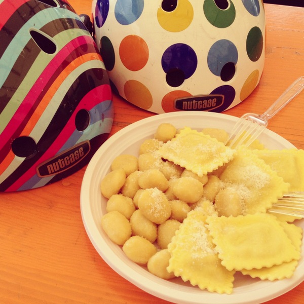 Along the way there are stops for antipasto, primo piatto, secondo piatto and dolce. The organisers mapped out a perfect tour along picturesque little streets and roads with just the right amount of cycling in between stops. Usually at each stop there was a choice of several different dishes along with lots of wine and even grappa at the secondo piatto stop. The tour included a surprise honey tasting stop as well as some gifts for the kids along the way (cycle hats and water bottles!).