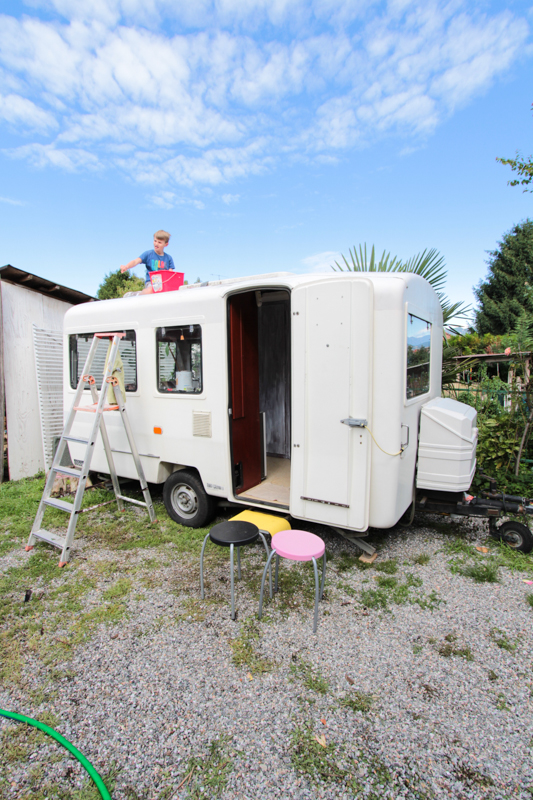 A little family project that we’ve been working on this summer. The kids pooled their savings and purchased this vintage camper. Unbelievable how much it has changed since this photo was taken. More pics soon.