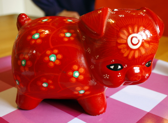 The other thing that is a big help is to slowly save spending money over the same amount of time. This time we used a lovely little red Piggy Bank that we had bought at a Frida Kahlo exhibit in Milan years ago. I wanted a place to collect money that we couldn’t touch after it was put in (you know…to pay the water guy or the plumber when I accidentely have an empty wallet).