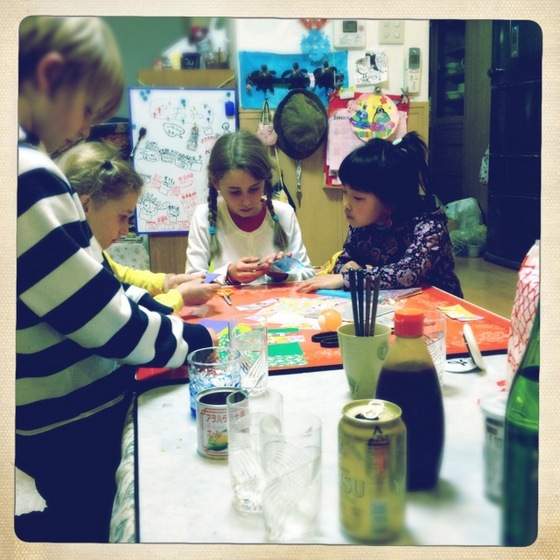 Meeting little daughter of friend. They didn’t speak a common language but ended up communicating through the art of origami! Hundreds of paper cranes, balls, frogs, pianos and ninja stars were made.