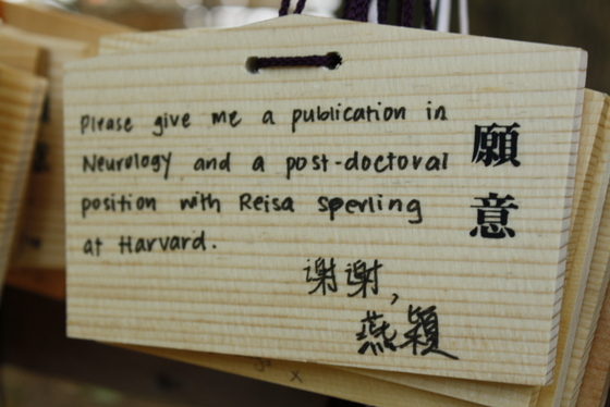 The prayer wall. Most people wrote wishes for loved ones or world peace.