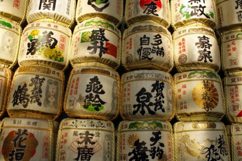 Barrels of sake offerings for the enshrined deities.