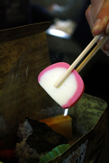 The famous Japanese “fish cake” (bento box lunch in the Shinkansen train).