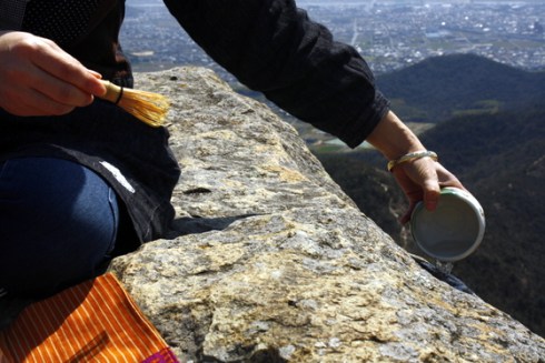 Mini matcha tea ceremony at top of mountain.