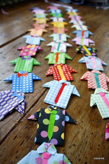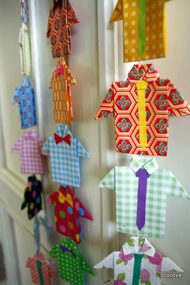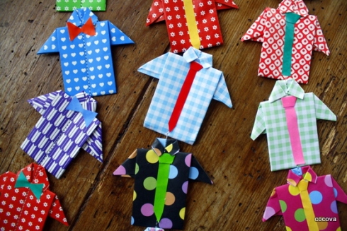 Last year I posted about our favourite homemade Father’s Day gift, an origami shirt and tie garland. The kids loved making it and their Papa loved receiving it. We still admire it on a daily basis and according to my site statistics it’s the one readers come to visit the most (it’s even featured on the Disney blog Spoonful here).