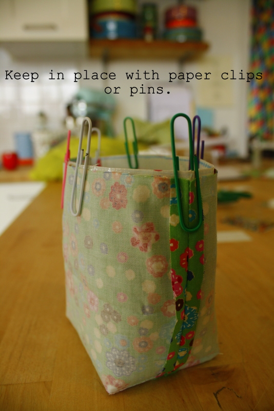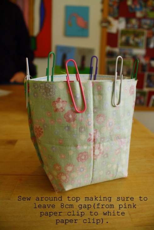 Here is a very basic tutorial that a good friend of mine designed for a very sweet little fabric basket. Very quick and gratifying. I used oilcloth for the outside and a cotton for the inside but it would be possible to use only cotton as well (or even nicer would be linen). If using cottons or linens I would recommend using interfacing to make it stiff enough to stand up on it’s own. The paper clips are used to avoid getting little pin holes in the plasticized material or oilcloth. Please let me know if I wasn’t clear on any of my instructions (I know the corner part is a bit hard to see in the photo).
